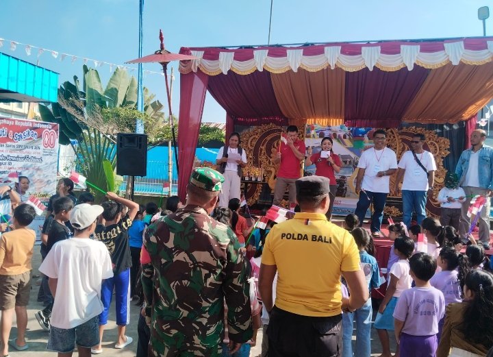 Bangli – Babinsa Desa Sulahan Koramil 1626-02/Susut Kodim 1626/Bangli, Koptu I Made Sukadana, menghadiri sekaligus melaksanakan pengamanan kegiatan Lomba Mewarnai dan Melukis dalam rangka memperingati Hari Ulang Tahun Kemerdekaan Republik Indonesia ke-80 tahun 2025, bertempat di Arena De’Toriz Playground, Lapangan Kecamatan Susut, Kabupaten Bangli, Minggu (24/8/2025).