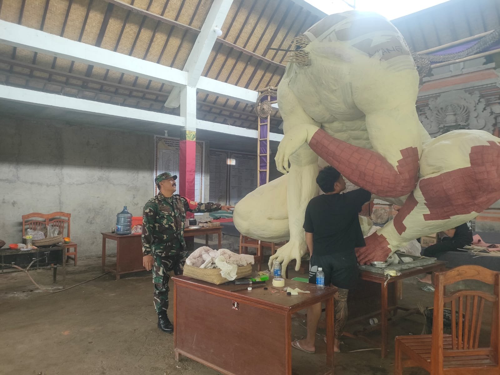 Babinsa Desa Tiga Lakukan Komsos dan Pantau Pembuatan Ogoh-ogoh Menjelang Nyepi