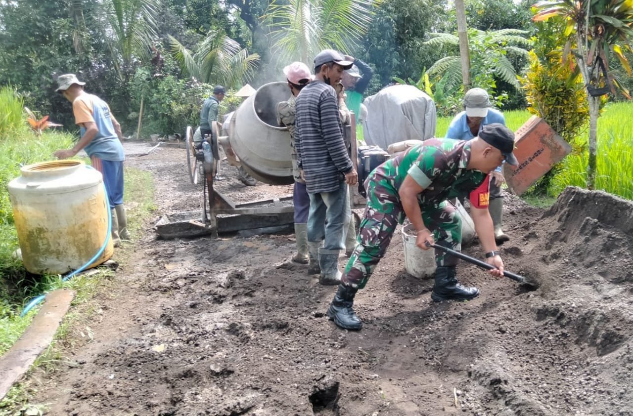 Babinsa Desa Wongaya Gede Turun Langsung dalam Gotong Royong Pembetonan Jalan Subak