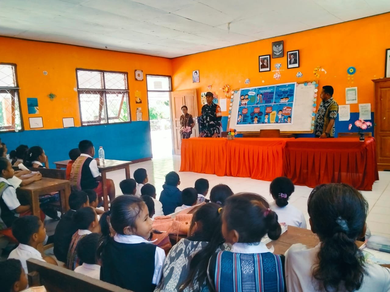 Kegiatan yang berlangsung di aula sekolah tersebut dihadiri oleh Kepala Sekolah Benyamin Tafuli, para guru pembimbing, serta seluruh siswa-siswi SD GMIT Nusa. Dalam kesempatan itu, Babinsa mengajak para pelajar untuk menanamkan nilai saling menghargai, menjauhi kekerasan, dan menumbuhkan semangat kebersamaan di lingkungan sekolah.