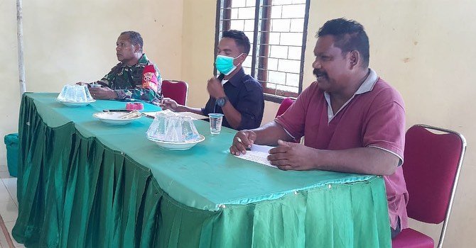NTT-SIKKA. Babinsa Koramil 1603-04/Kewapante Serka Yefta Yoel Honin menghadiri penyelesaian masalah pemukulan di wilayah binaan Desa Baomekot, kec. Hewokloang, Kab. Sikka, Jumat 31/01/25.