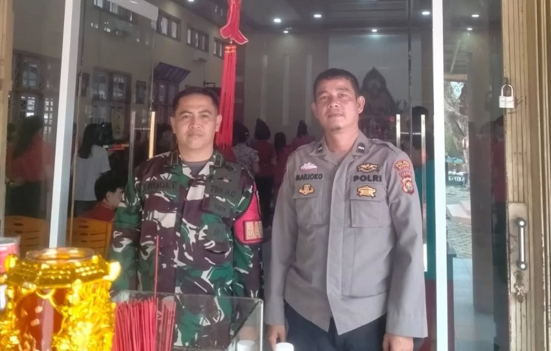 Babinsa Kampung Pancasila Koramil 416-06/Muara Bungo, Pelda Rudi Tasgunarto, melaksanakan monitoring kegiatan ibadah perayaan Hari Raya Imlek di Vihara Padmakirti, Kelurahan Sungai Pinang, Kecamatan Bungo Dani, Kabupaten Bungo, Kamis (30/01/2025).
