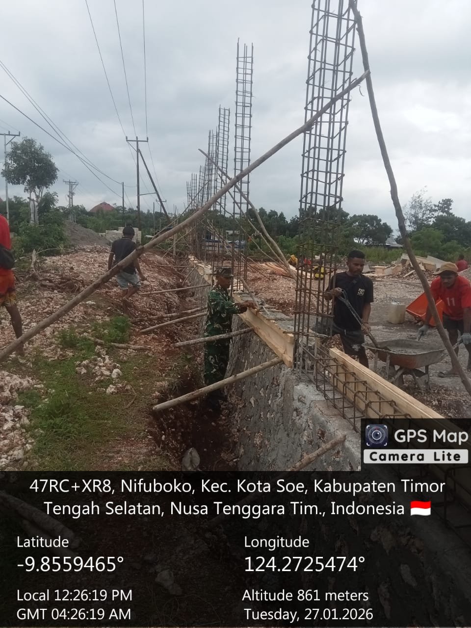 Menurut Danramil 1621-01/Kota SoE, Kapten Inf Gunawan Budi Haryanto, keterlibatan Babinsa dalam kegiatan ini adalah bagian dari pembinaan teritorial yang menjadi salah satu tugas pokok TNI. “Kehadiran kami di lokasi pembangunan ini adalah untuk memastikan bahwa setiap tahap berjalan baik, aman, dan tertib,” ujarnya.
