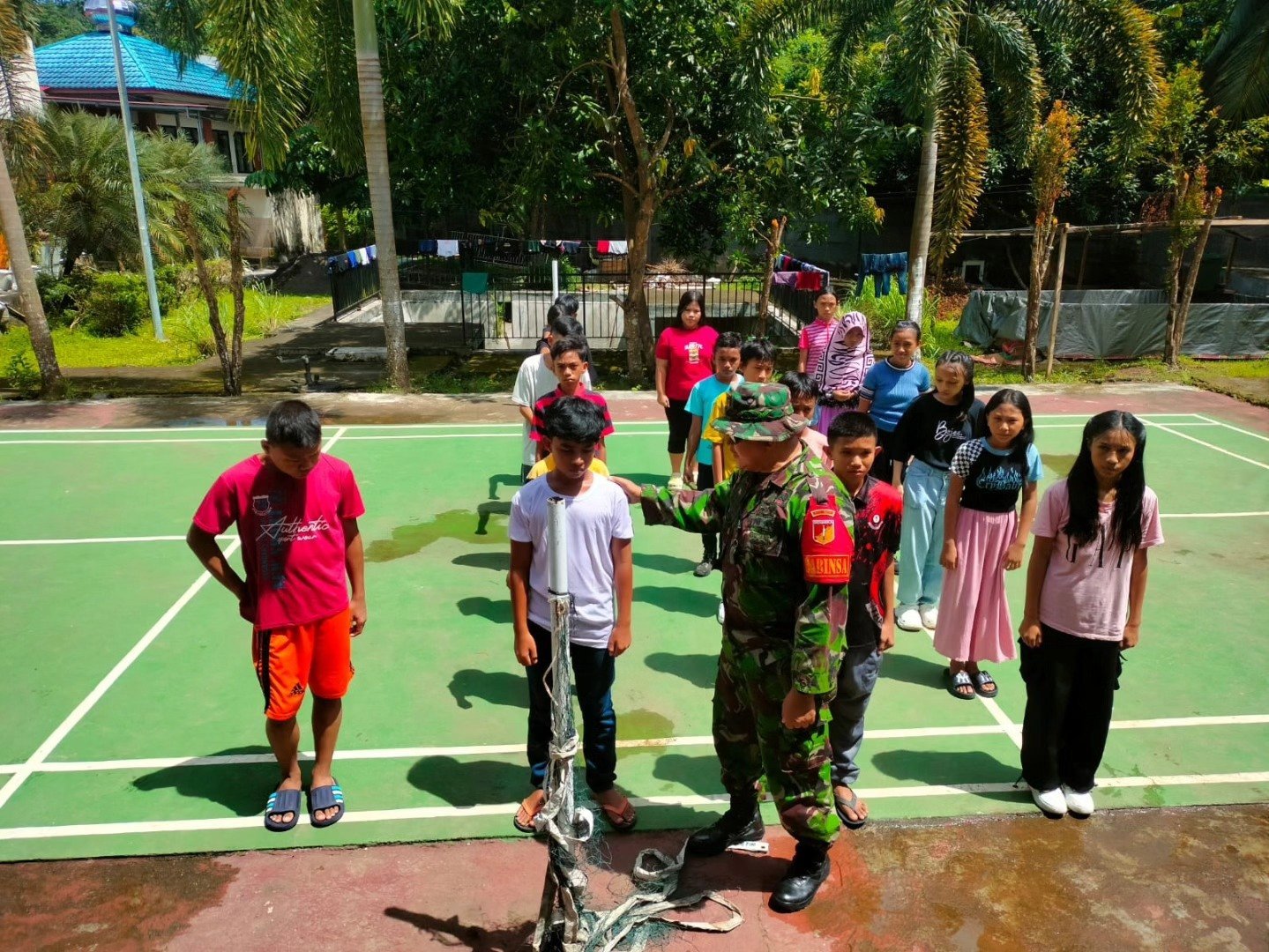 Babinsa Kodim 1309/Manado Latih Disiplin dan Cinta Tanah Air Siswa SRMP21 dalam Kegiatan MPLS