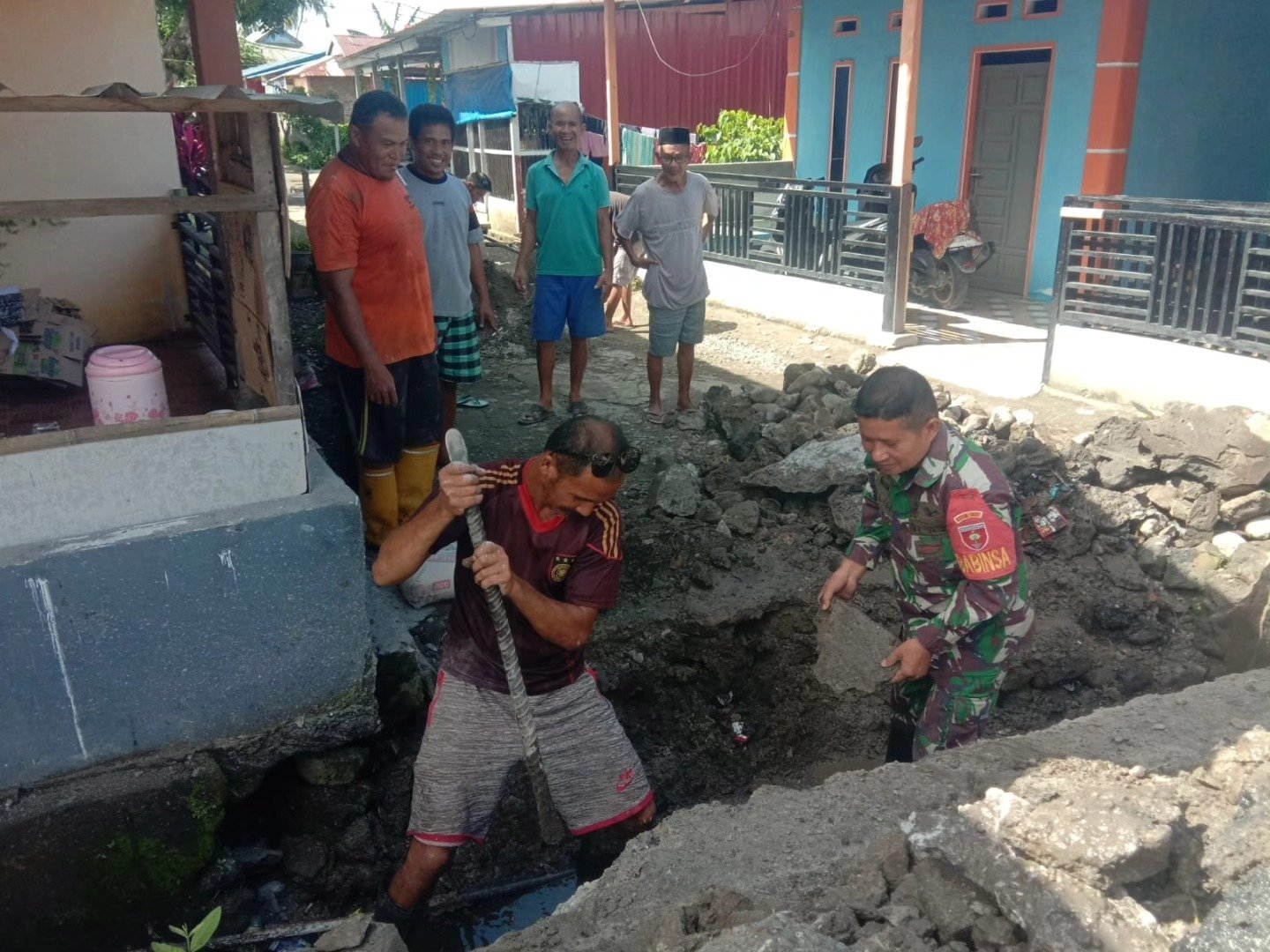 Babinsa bersama masyarakat bahu-membahu membongkar dan membersihkan saluran air yang dipenuhi endapan tanah, sampah, dan material lainnya. Antusiasme warga sangat terlihat, karena mereka menyadari pentingnya menjaga lingkungan agar tetap bersih dan sehat.