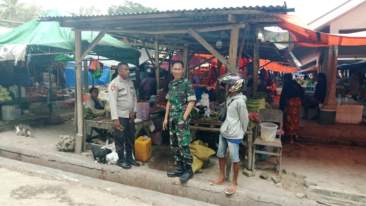 Babinsa Kodim 1621 TTS Bersama Bhabinkamtibmas Polres TTS Komsos Di Pasar Boibalan Niki Niki
