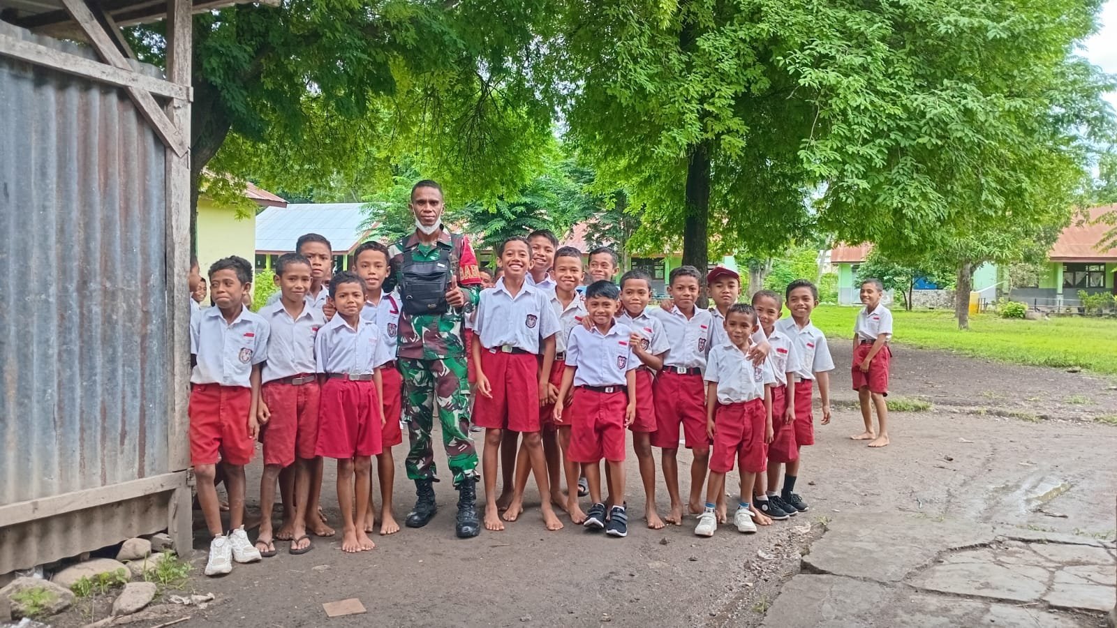 Babinsa Kodim 1621 TTS, Komsos Di SDN Bouentuka Berikan Pesan Positif Dan Tanamkan Disiplin Sejak Dini