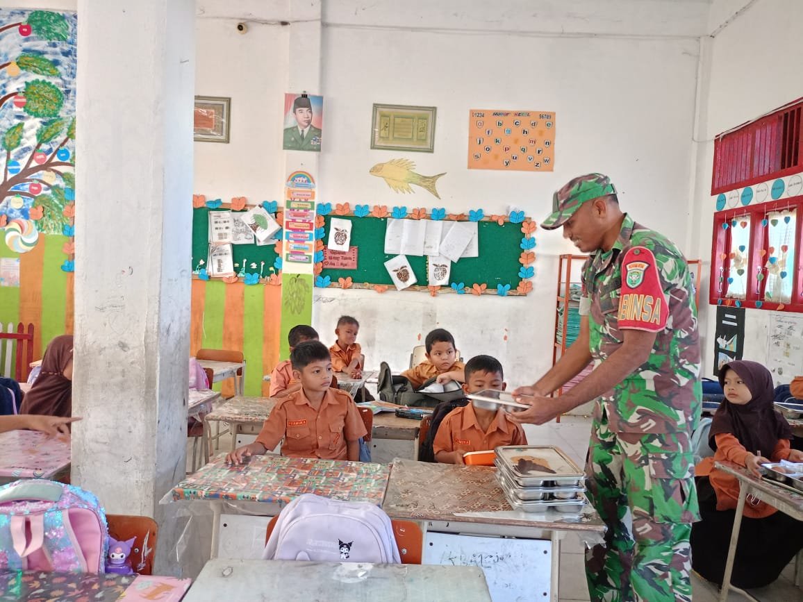 Babinsa Koramil 01/Jaya Pantau Distribusi Makanan Bergizi di SD Negeri 1 Jaya