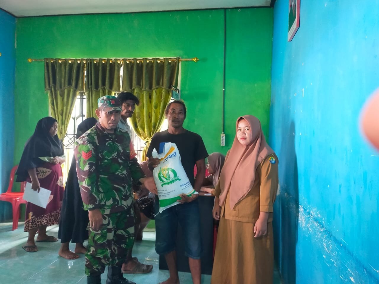 Babinsa Koramil 02 Tolut Dampingi Penyaluran Bantuan Pangan Beras Di Wilayah Binaan