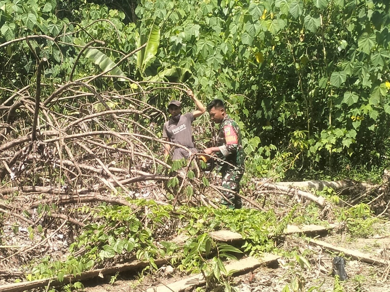 Babinsa Koramil 04 Dondo Bantu Petani Bersihkan Lahan Untuk Ditanami Jagung
