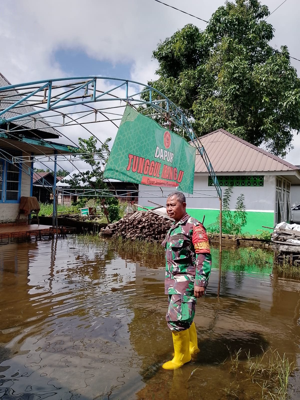 Menanggapi hal tersebut Sertu Poniran, Babinsa Koramil 06/Martapura, turun langsung ke lapangan untuk memantau perkembangan kondisi banjir serta memastikan keselamatan warga yang terdampak.