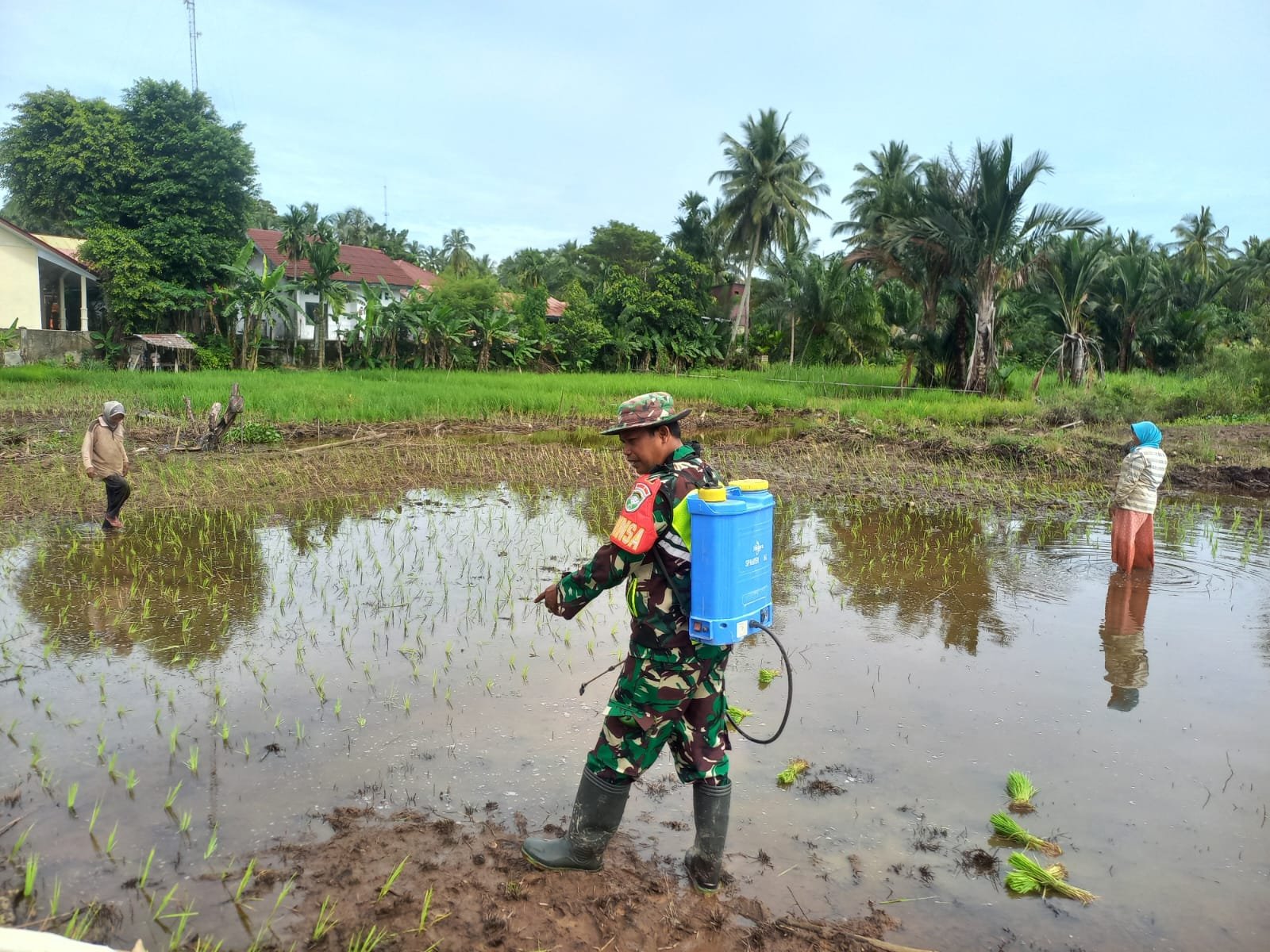 Selain melakukan pendampingan teknis, Babinsa juga mengingatkan para petani untuk selalu menggunakan alat pelindung diri selama proses penyemprotan guna menjaga kesehatan dan keselamatan kerja. Diharapkan dengan penerapan cara yang benar, hasil panen padi petani dapat meningkat dan terhindar dari kerugian akibat serangan hama.
