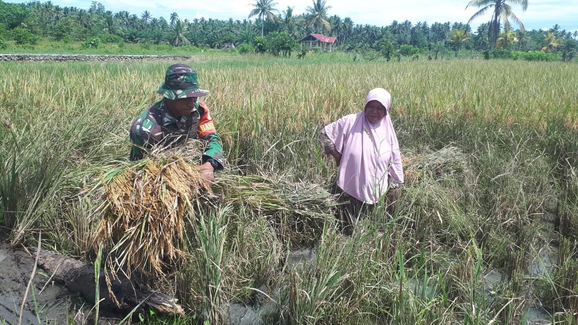 Wujud dukungan TNI khususnya prajurit kewilayahan yaitu Babinsa dalam mendukung ketahanan pangan, dengan semangat ikut serta terjun langsung ke sawah bantu para petani desa binaannya saat memanen padi, inilah yang dilakukan oleh Babinsa kepada para petani warga desa binaannya.