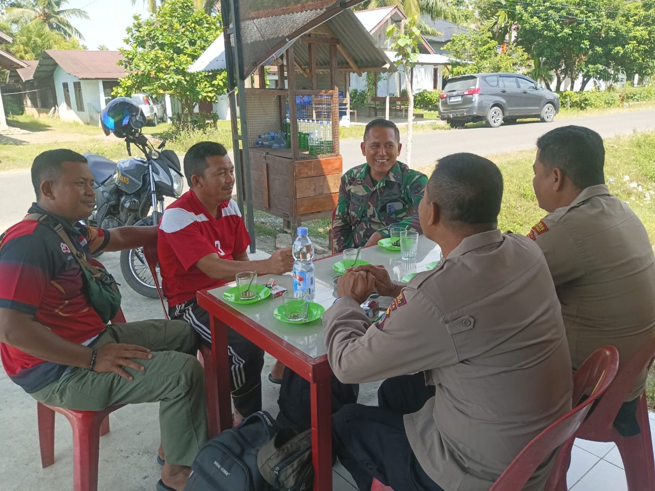 ACEH BARAT — Dalam upaya mempererat hubungan antara aparat keamanan dan masyarakat, Babinsa Koramil 09/Samatiga Serda Haswin Pranoto bersama Bhabinkamtibmas melaksanakan kegiatan komunikasi sosial (komsos) di Desa Pinem, Kecamatan Samatiga. Selasa (30/9/2025)