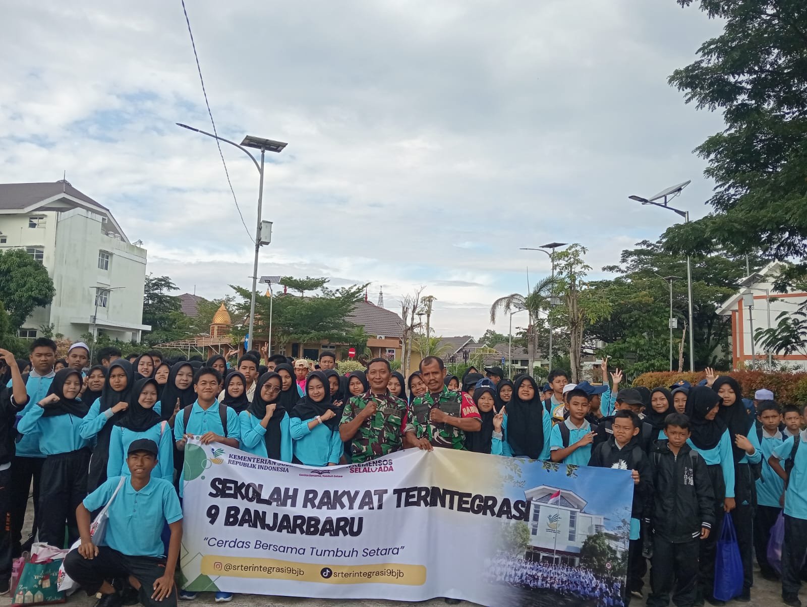 Banjarbaru – Babinsa Koramil 1006-12/Liang Anggang, Kelurahan Guntung Manggis Serka Sianipar bersama Babinsa Kelurahan Guntung Payung Sertu Gatot melaksanakan pendampingan kegiatan Outing Class Sekolah Rakyat Terintegrasi 9 Banjarbaru, Selasa (21/10/2025).