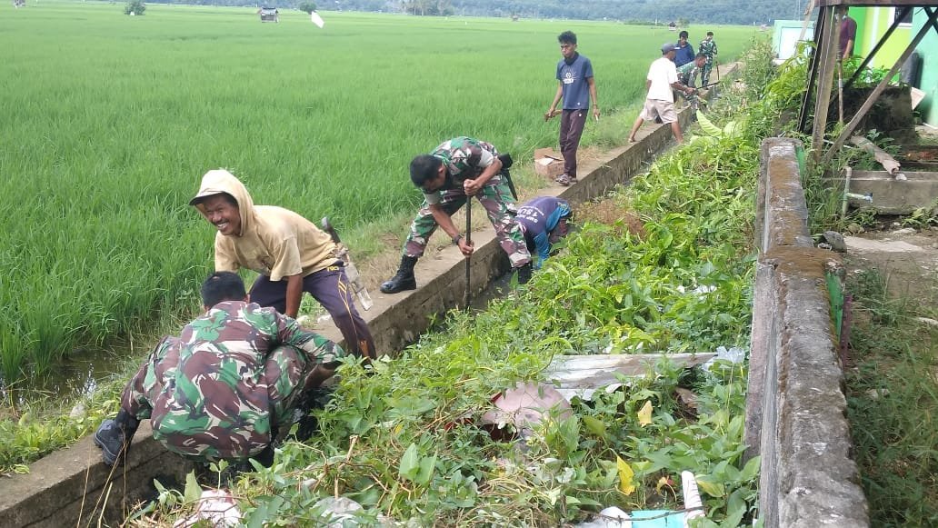 Kegiatan karya bakti ini berlangsung dengan penuh semangat dan kebersamaan, mencerminkan sinergi yang solid antara TNI dan masyarakat dalam menjaga lingkungan dan meningkatkan kualitas hidup bersama.