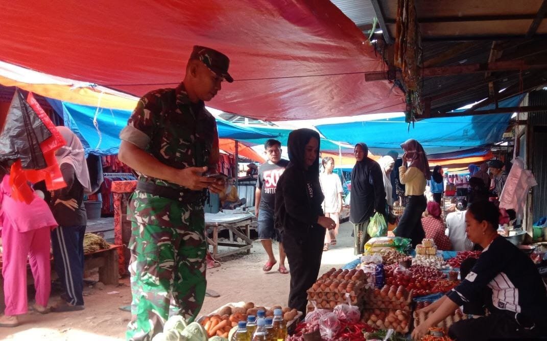 SIDRAP – Dalam upaya menjaga stabilitas harga dan ketersediaan kebutuhan pokok masyarakat, Sertu Isman dari Babinsa Koramil 1420-01/Panca Lautang melakukan pemantauan langsung di Pasar Sentral Bilokka, Desa Corawali, Kecamatan Panca Lautang, Kabupaten Sidrap pada Rabu (25/03/2026).