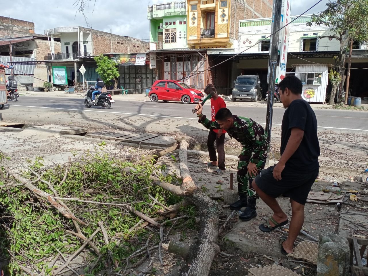 Dengan semangat kebersamaan, Babinsa dan masyarakat bahu-membahu memotong dan menyingkirkan ranting-ranting pohon yang tumbang. “Kehadiran kami di sini sebagai bentuk Partisipasi TNI dalam membantu masyarakat menyelesaikan masalah yang berdampak langsung pada aktivitas warga,” ungkap Serma afsalul Rahman.