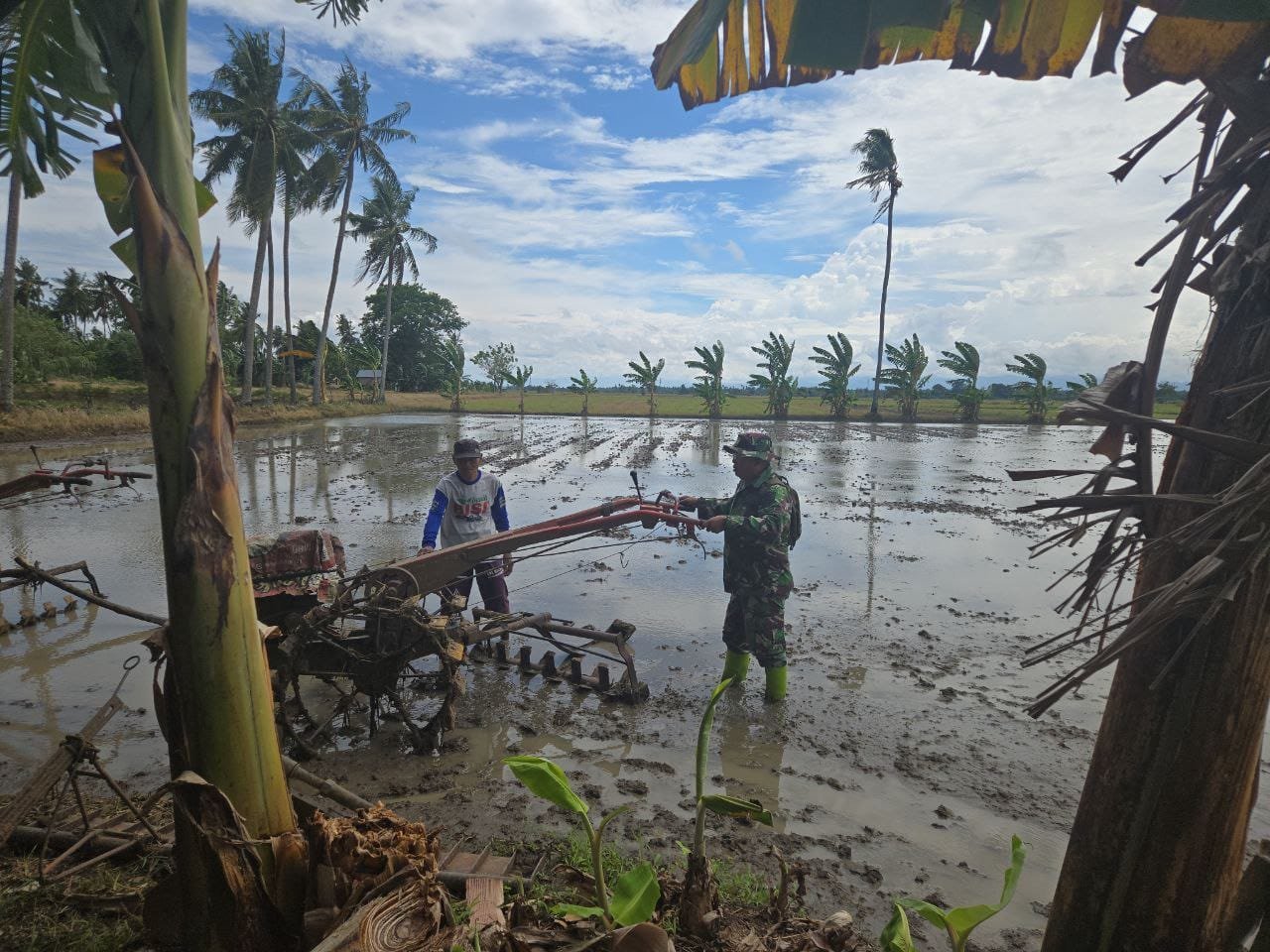 Babinsa Koramil 1420-05/Dua Pitue Dampingi Petani Olah Lahan, Dukung Ketahanan Pangan di Sidrap