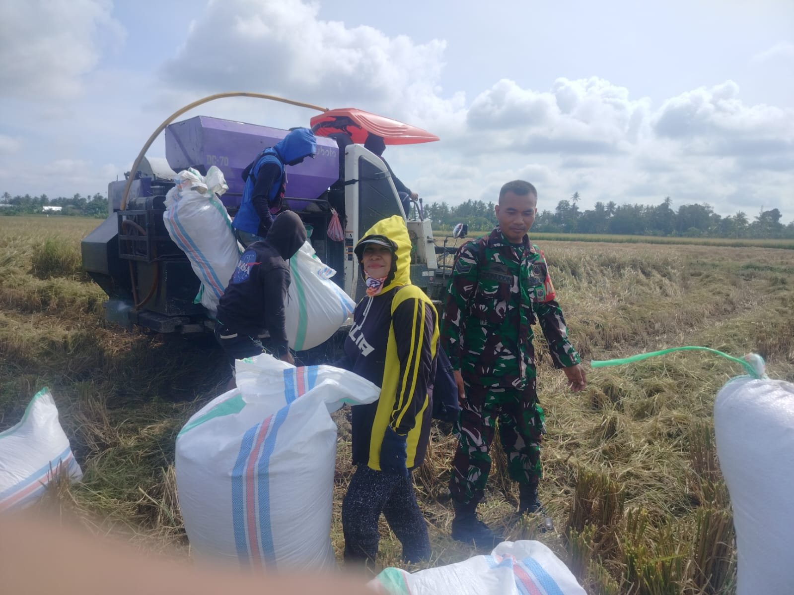 Babinsa Koramil 1420-07/Baranti Dampingi Panen Padi untuk Ketahanan Pangan di Manisa