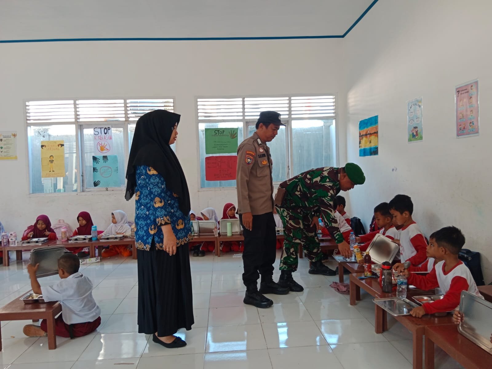 Babinsa Koramil 1426-01/Polut Pantau Pendistribusian Makanan Bergizi Gratis Untuk Anak Sekolah