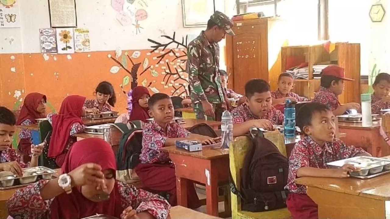 Program pemberian makanan bergizi ini bertujuan untuk meningkatkan asupan nutrisi bagi anak-anak sekolah dasar, khususnya di wilayah pedesaan, guna mendukung pertumbuhan dan prestasi belajar mereka. Serda Pajar hadir langsung untuk memastikan kegiatan berjalan lancar dan tertib.