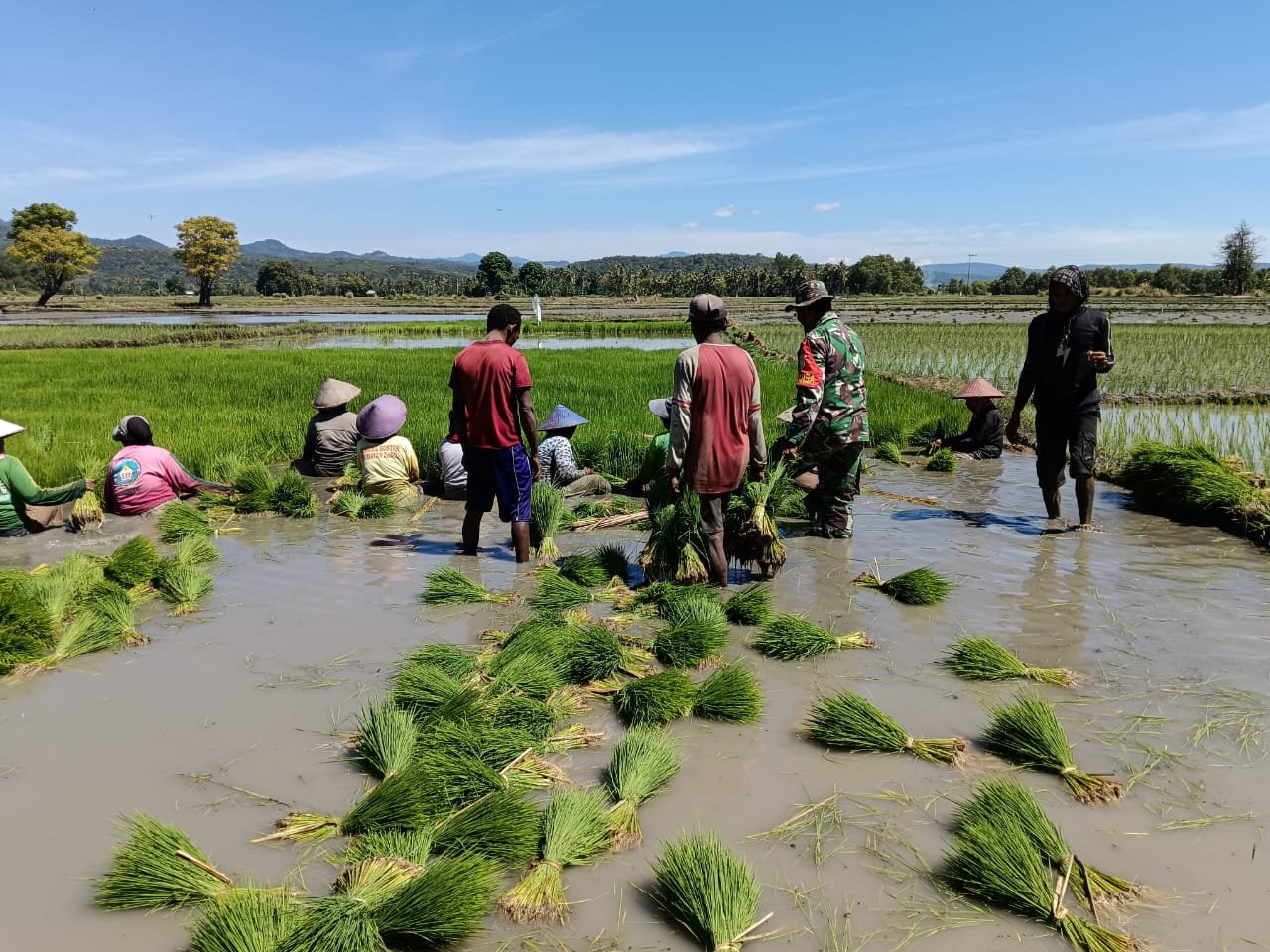 Dalam cuaca yang panas, Serka Oracio tidak ragu untuk terjun langsung ke dalam lumpur sawah membantu petani mencabut bibit padi (ndaut) yang siap ditanam. Tindakan ini bertujuan tidak hanya untuk memberikan contoh langsung, tetapi juga untuk memotivasi petani agar lebih bersemangat dalam mengelola lahan mereka.