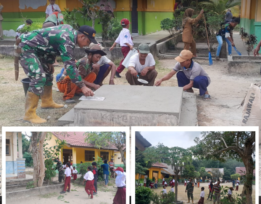 Bangka Selatan – Untuk menanamkan nilai-nilai karakter pada anak sejak usia dini, Sertu Masruli Yanto yang bertugas sebagai Babinsa Koramil 432-03/Lepar melaksanakan kegiatan Komunikasi Sosial (Komsos) dan Pembinaan Teritorial (Binter) melalui program gotong royong di SD Negeri 05 Lepar, Kecamatan Lepar, Kabupaten Bangka Selatan pada Senin, 2 Februari 2026.