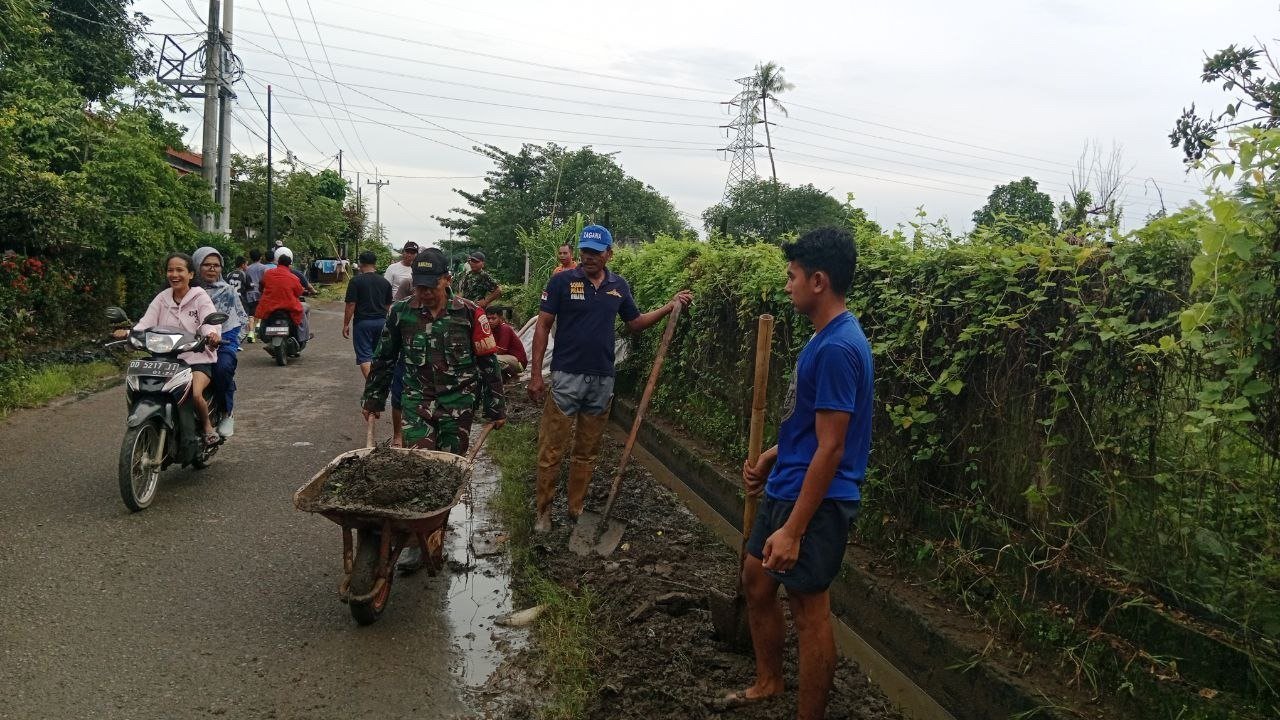 Gowa – Babinsa Koramil 1409-03/Btm Serka Rizal melaksanakan karya bakti pembersihan lingkungan bersama Masyarakat dan Mahasiswa/I Universitas Mega Reski bertempat Bersama diSepanjang Jalan Borong Sapiri Ling Bontomanai Kel Bontomanai Kec Bontomarannu Kab Gowa. Senin (27/01/2025).