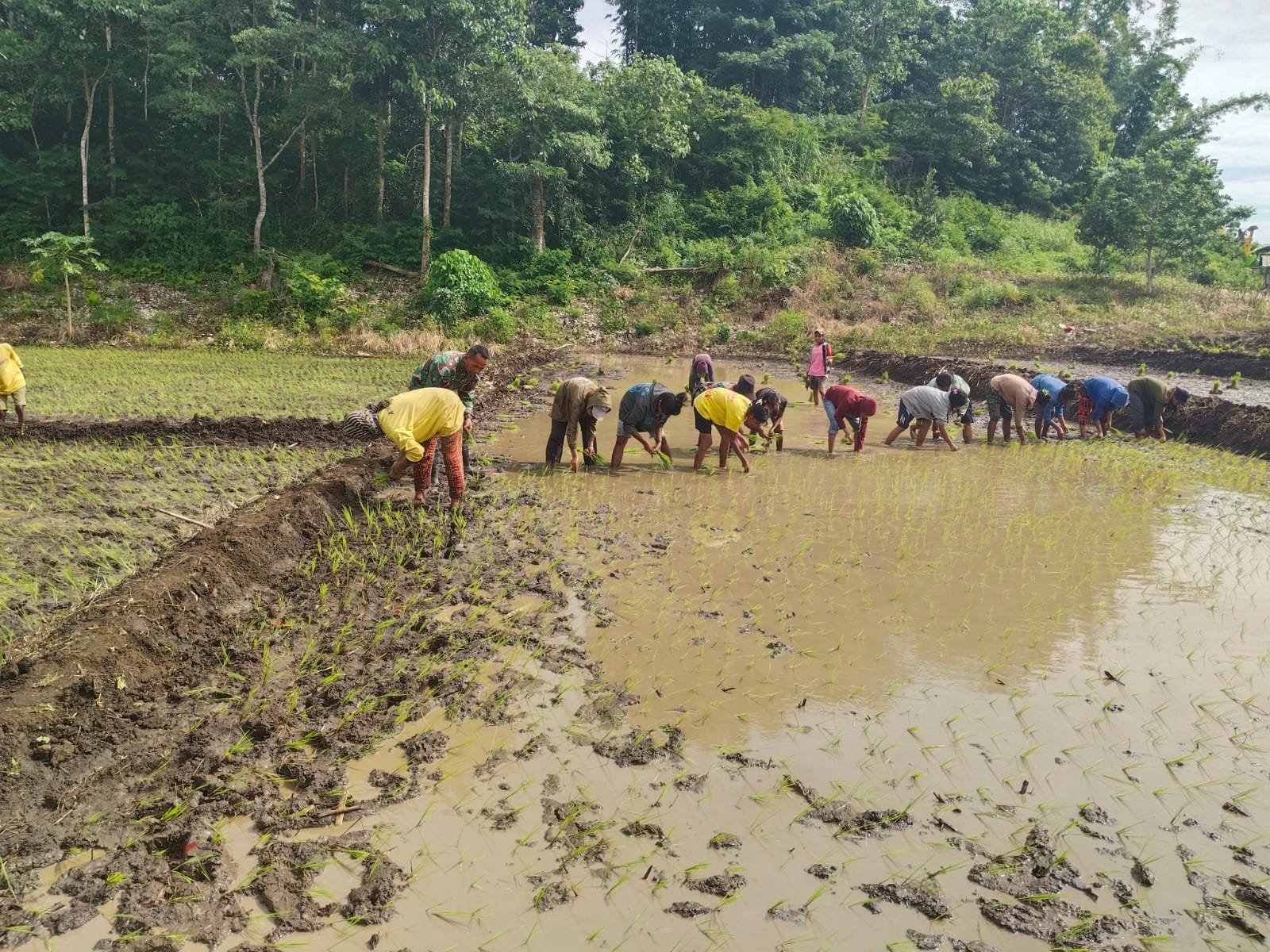 Kegiatan ini merupakan salah satu upaya Babinsa dalam mendukung program ketahanan pangan nasional serta memperkuat silaturahmi antara TNI dan masyarakat di wilayah binaan mereka. Dengan hadir langsung di lapangan, Babinsa tidak hanya memberikan pendampingan, tetapi juga memotivasi para petani untuk tetap bersemangat dalam mengelola lahan pertanian.