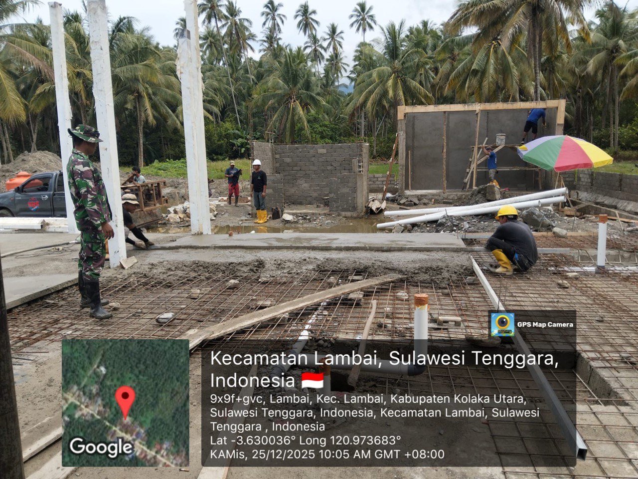Kolaka Utara – Pada tanggal 25 Desember 2025, Serda Arkas, seorang Babinsa dari Koramil 1412-08/Ranteangin, melaksanakan pemantauan pembangunan Dapur Makan Bergizi Gratis (MBG) di Desa Lambai, Kecamatan Lambai, Kabupaten Kolaka Utara. Kegiatan ini merupakan bagian dari tanggung jawab Babinsa untuk mendukung program pemerintah dalam meningkatkan gizi masyarakat, terutama untuk anak-anak dan kelompok rentan.