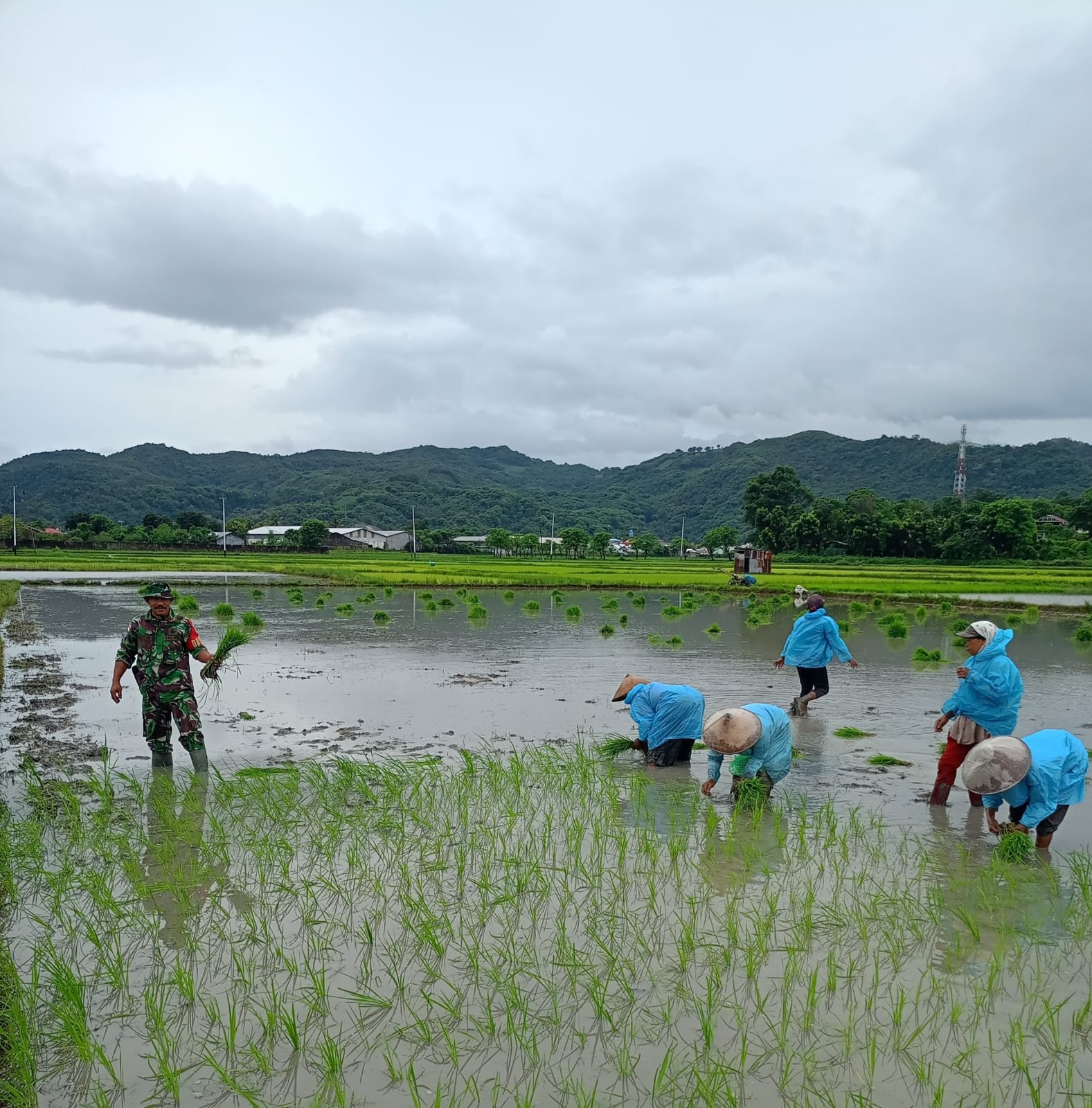 Babinsa Koramil Reok Turun Langsung Dukung Petani Tanam Padi di Manggarai