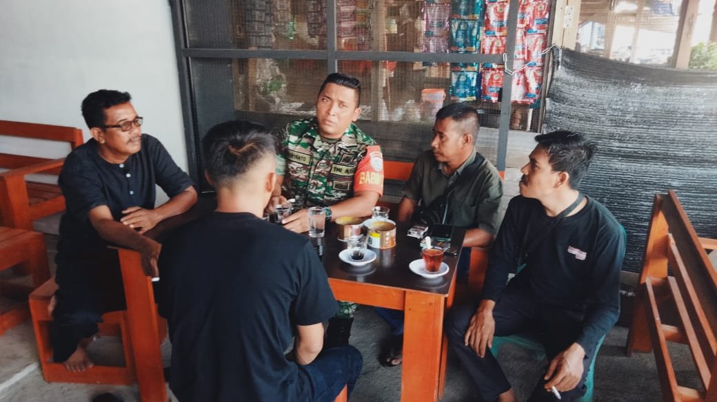 Aceh Jaya – Mencegah kenakalan remaja di kalangan masyarakat, Babinsa Koramil 0114-06/Teunom Koptu Sugianto melaksanakan Komunikasi Sosial (Komsos) dengan para pemuda, di warung Kopi Desa Alue Ambang, Kecamatan Teunom, Kabupaten Aceh Jaya. Jumat, (27/12/2021).