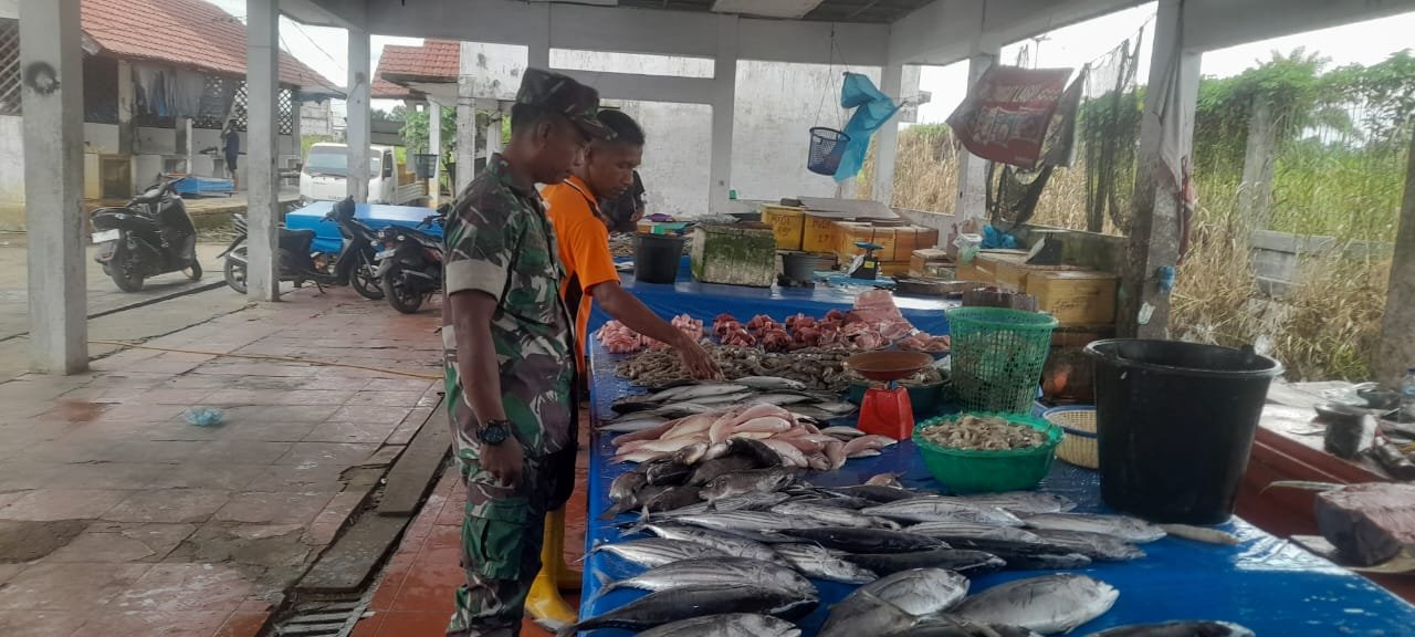 Babinsa Koramil Teunom Pantau Aktivitas Pasar Ikan Keude Teunom