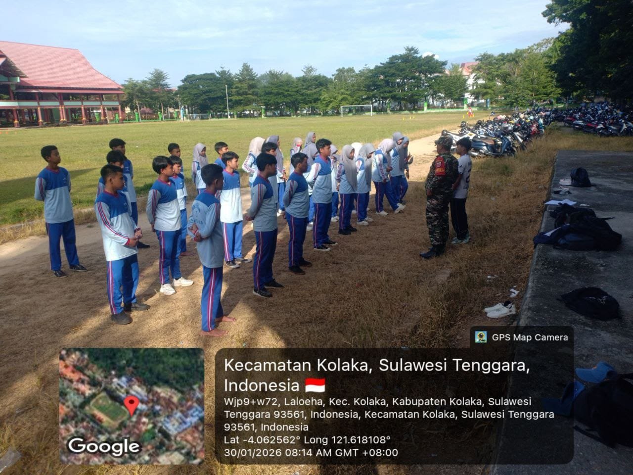 Kolaka – Pada Jumat, 30 Januari 2026, Sertu Muh. Amir, Babinsa dari Kelurahan Laloeha, melakukan kegiatan pelatihan Peraturan Baris Berbaris (PBB) di Lapangan Konggoasa, Jalan Pemuda, Kelurahan Laloeha, Kecamatan Kolaka, Kabupaten Kolaka. Kegiatan ini diikuti oleh para siswa SMA Negeri 1 Kolaka dan bertujuan untuk menumbuhkan kedisiplinan serta sikap hormat di kalangan pelajar.
