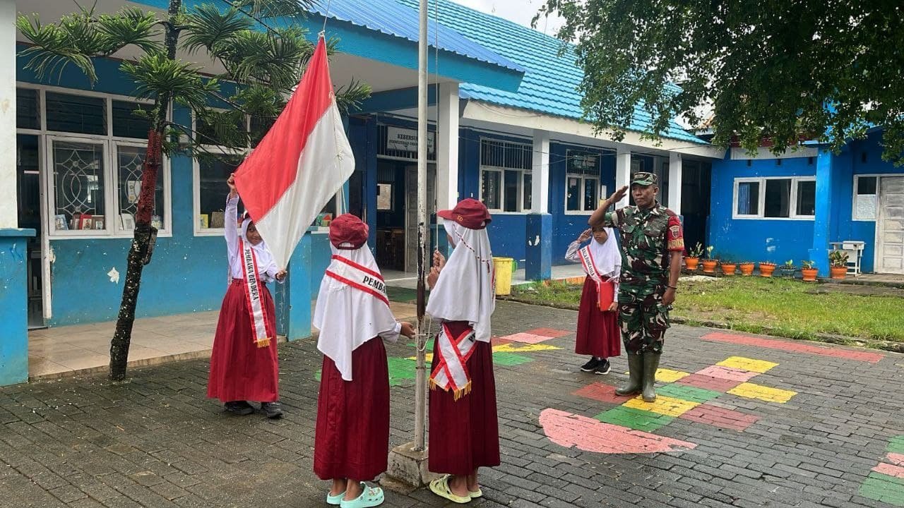 Babinsa Maros Jadi Pembina Upacara Bendera di Sekolah Dasar