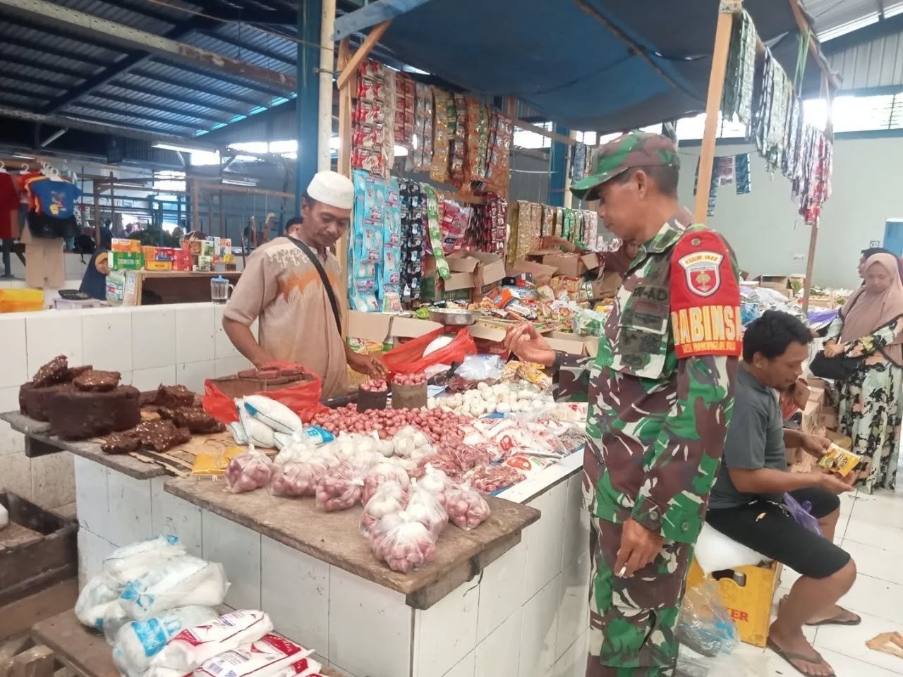 Maros – Antisipasi kelangkaan bahan Sembako, Personil Babinsa Kodim 1422/Maros Serka Jumadi melaksanakan pemantauan pasar guna mengecek harga dan kelangkaan sembako di seluruh pasar tradisional wilayah Kab. Maros. Kamis (16/1/2025).