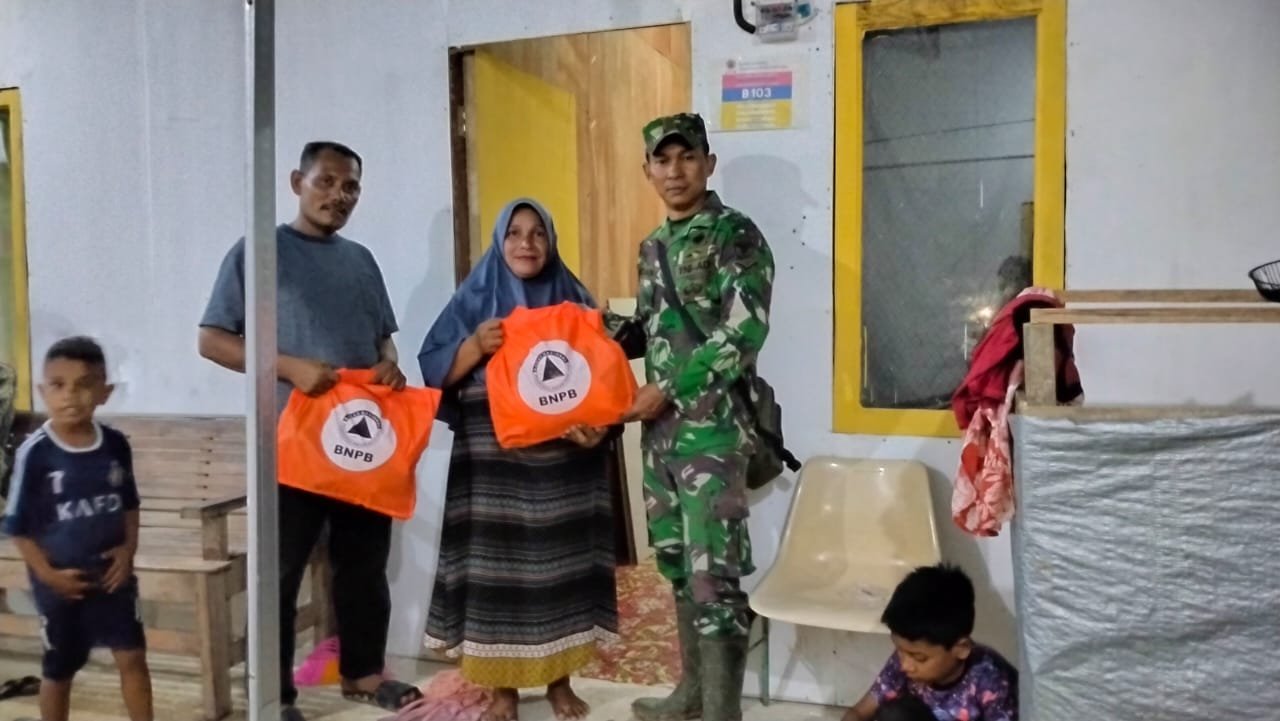 Babinsa Mendampingi Penyaluran Bantuan BNPB untuk Korban Banjir Bandang di Hunian Sementara
