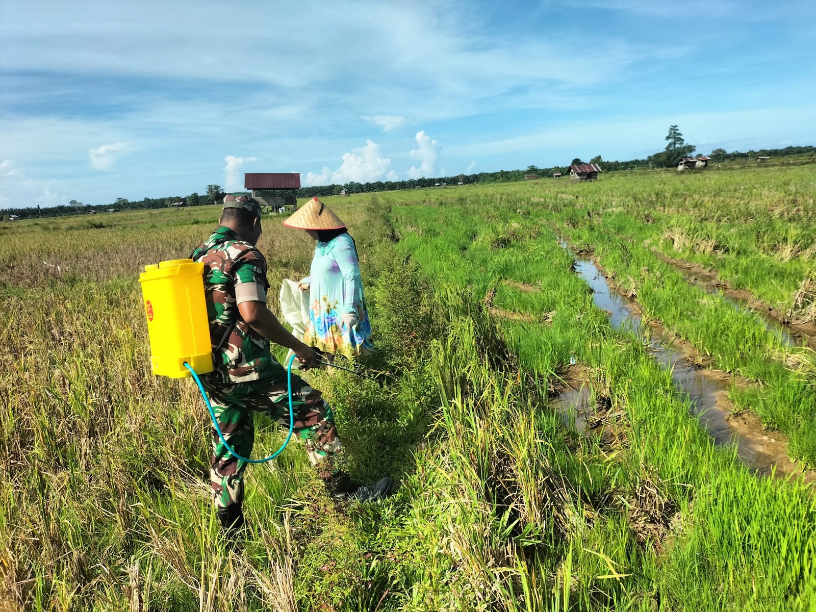 Kegiatan ini dilakukan sebagai bentuk kepedulian Babinsa terhadap masyarakat binaan, khususnya para petani yang menjadi tulang punggung ketahanan pangan di daerah tersebut. Dengan turut membantu penyemprotan pematang, Babinsa memastikan jalur menuju area persawahan tetap bersih dan aman untuk dilalui.