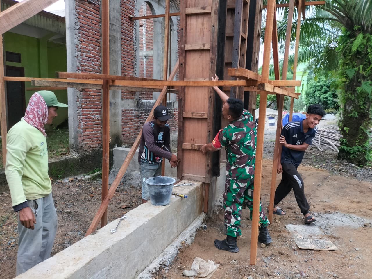 Babinsa Panga Bantu Warga Perbaiki Mesjid Lewat Karya Bakti