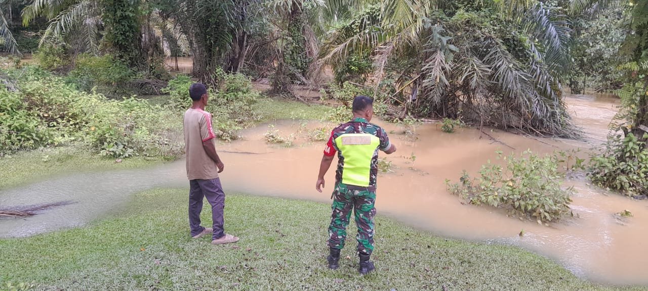 Babinsa Pantau Perkembangan Aliran Sungai Pasca Hujan Deras