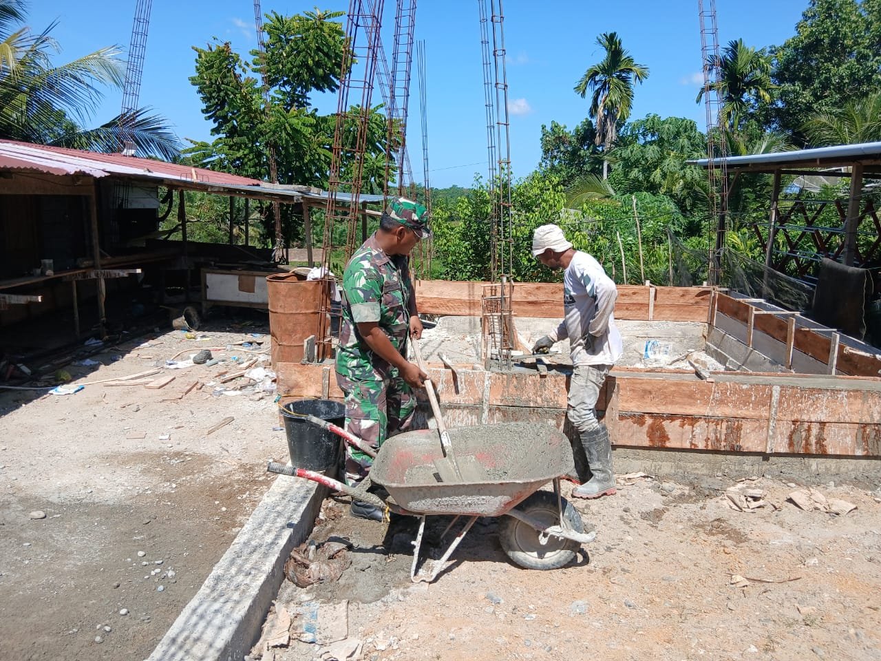 Kegiatan yang dilaksanakan pada Senin (29/09), ini merupakan wujud nyata kemanunggalan TNI dengan rakyat. Serda Amrillah terlihat bahu-membahu bersama warga setempat dalam tahapan krusial pembangunan rumah warga, yaitu pengecoran pondasi. Kehadiran Babinsa ini memberikan motivasi tambahan bagi pemilik rumah dan warga yang terlibat dalam kerja bakti tersebut.