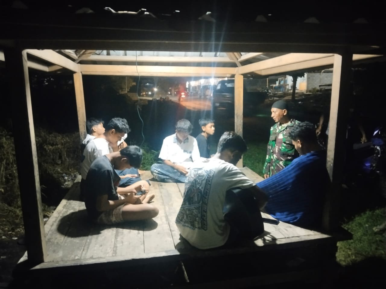 Kehadiran Babinsa disambut baik oleh para warga yang tengah berjaga malam. Pada kesempatan itu, Kopka Syamsudin memberikan arahan sekaligus imbauan agar kegiatan ronda malam terus dilaksanakan secara rutin, sebagai bentuk kepedulian dan tanggung jawab bersama dalam menjaga keamanan lingkungan.