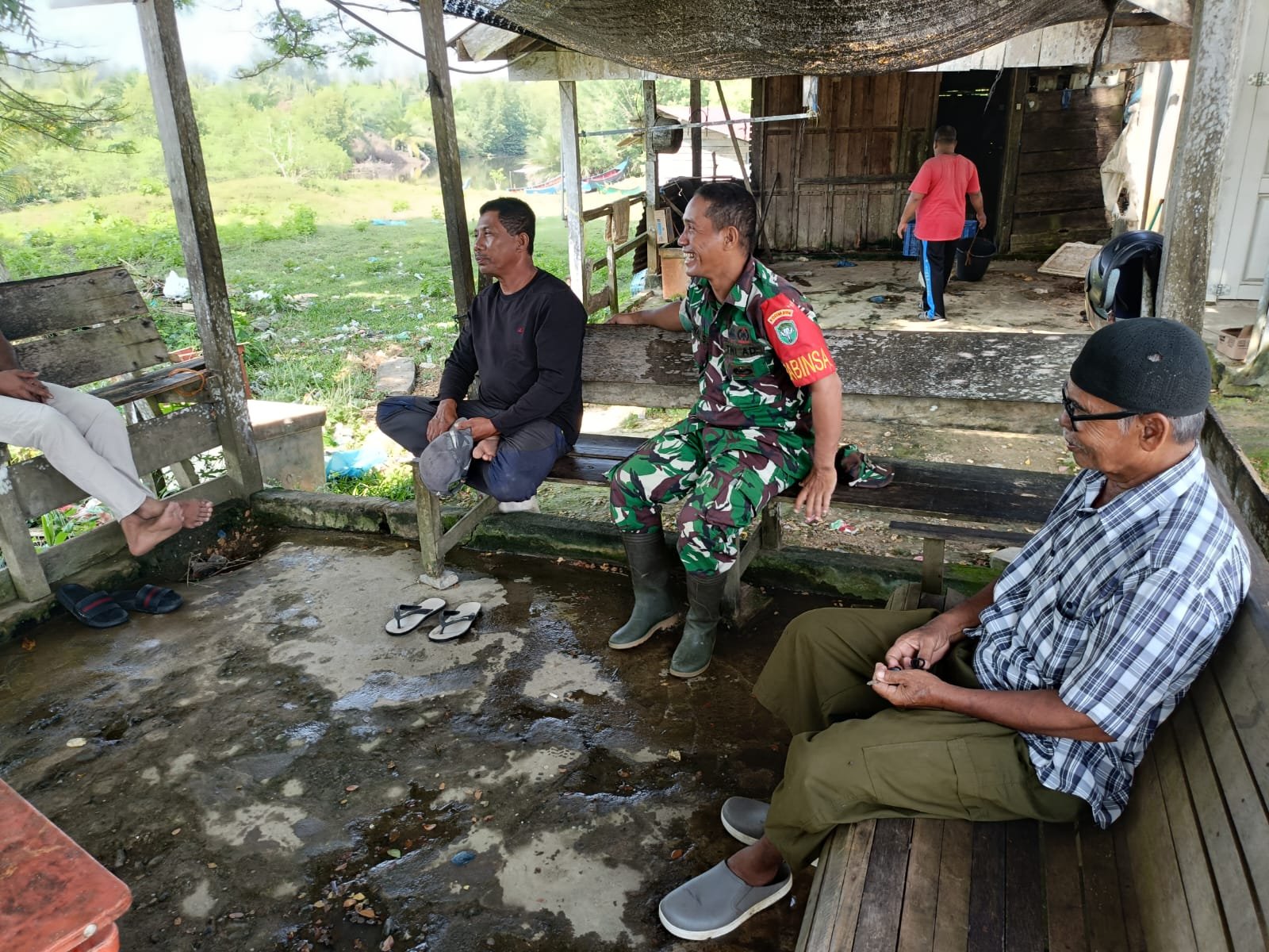 ACEH JAYA – Serda Ronal, Babinsa Pos Ramil Darul Hikmah, Kodim 0114/Aceh Jaya, hari ini melaksanakan kegiatan Komunikasi Sosial (Komsos) bersama masyarakat di Desa Patek, Kecamatan Darul Hikmah, Kabupaten Aceh Jaya. Diskusi utama dalam komsos kali ini berfokus pada dampak cuaca buruk yang belakangan ini melanda wilayah tersebut terhadap aktivitas nelayan dan ketersediaan harga ikan di pasar lokal, Senin (11/08).