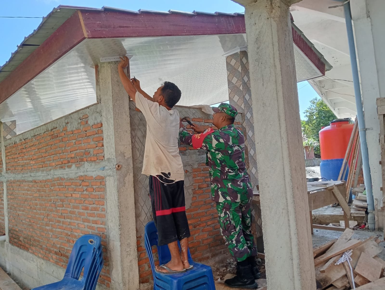 Kegiatan perehaban ini dilakukan secara gotong royong bersama warga setempat, mencerminkan kekompakan dan semangat kebersamaan antara aparat TNI dengan masyarakat.