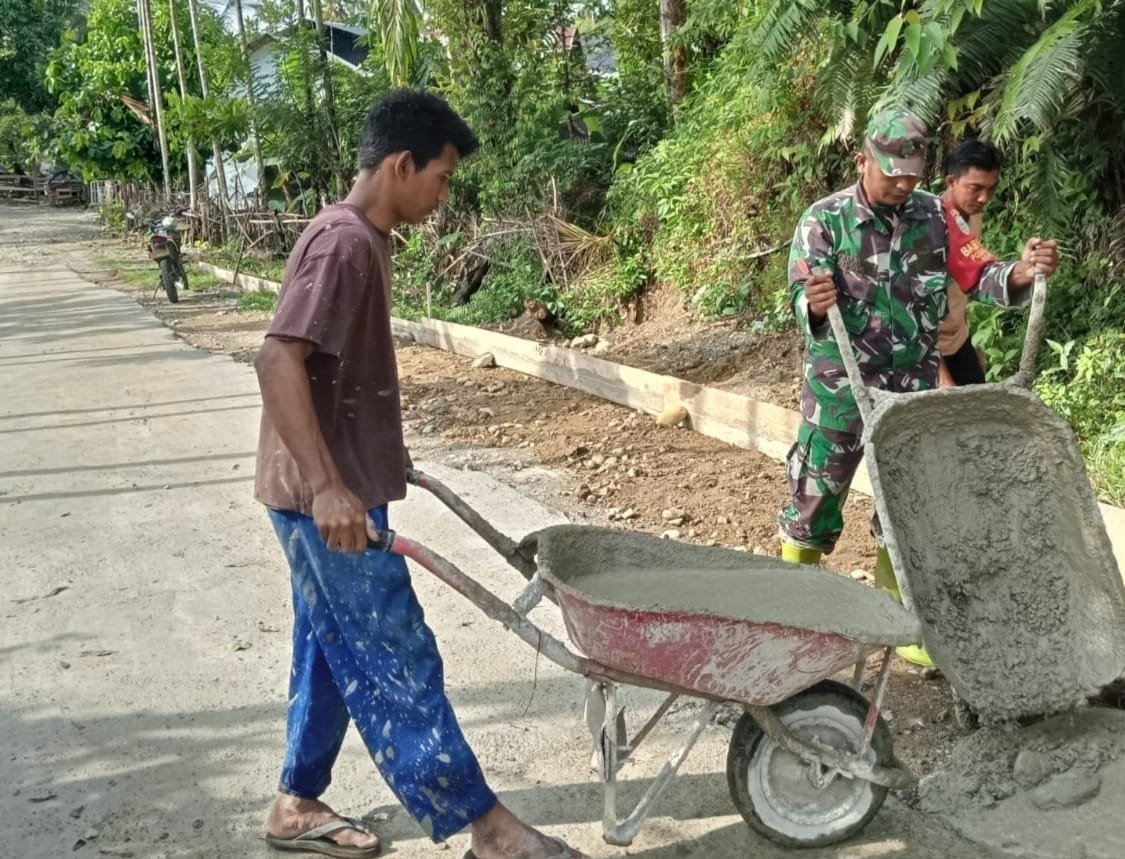 Dalam kegiatan tersebut, tampak Babinsa setempat turun langsung ke lapangan bersama masyarakat. Mereka bahu membahu mengecor bahu jalan sepanjang kurang lebih 200 meter, yang selama ini menjadi akses utama warga dalam menjalankan aktivitas sehari-hari, seperti menuju ke ladang, pasar, sekolah, maupun fasilitas umum lainnya.