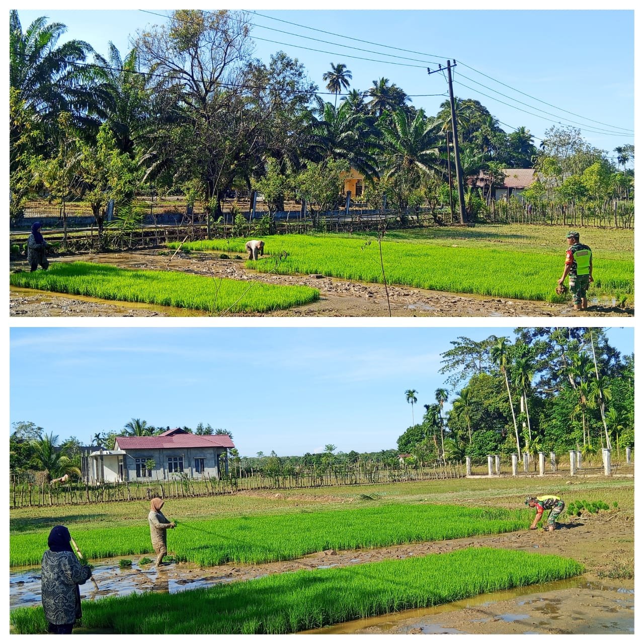“Kami berharap penanaman bibit padi cepat selesai sehingga masa panen tepat sesuai yang diharapkan dan saat panen nanti hasilnya memuaskan, agar petani semakin sejahtera serta program swasembada pangan dapat terwujud sebagaimana fungsi pembinaan teritorial di wilayah,” ujar Babinsa.