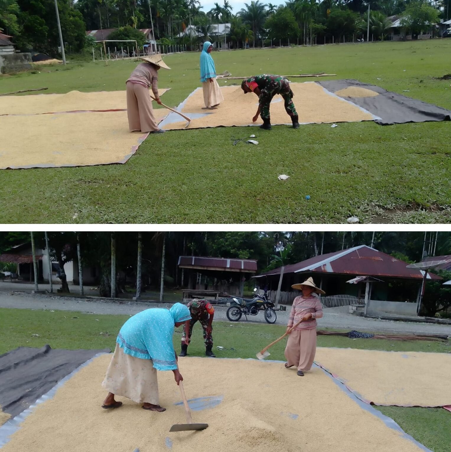 Babinsa Posramil 06 Bubon Membantu Menjemur Padi