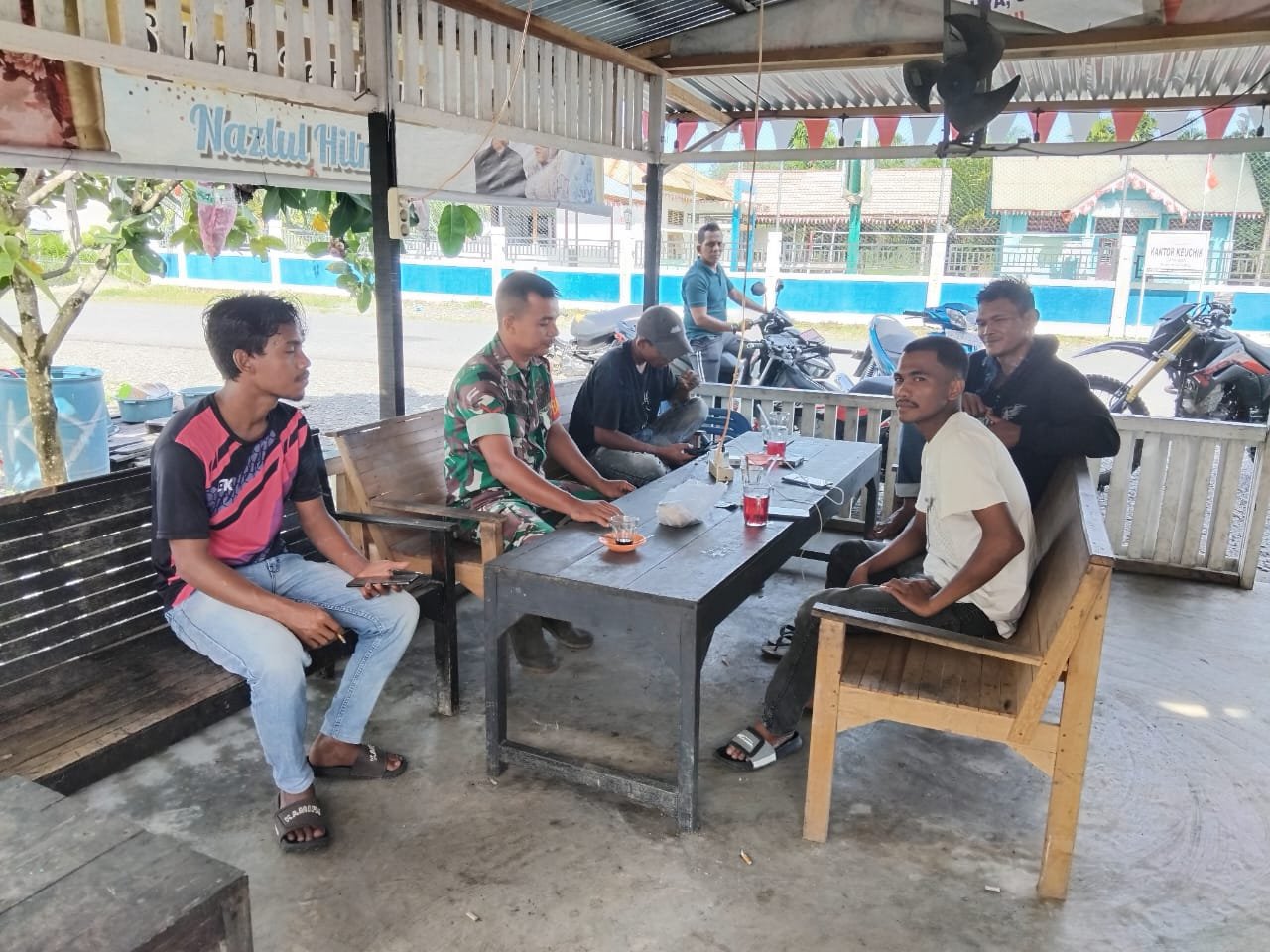 Babinsa Posramil Pasie Raya Saweu Keudee Kopi dan Komsos Bersama Pemuda Desa Tuwi Kareung