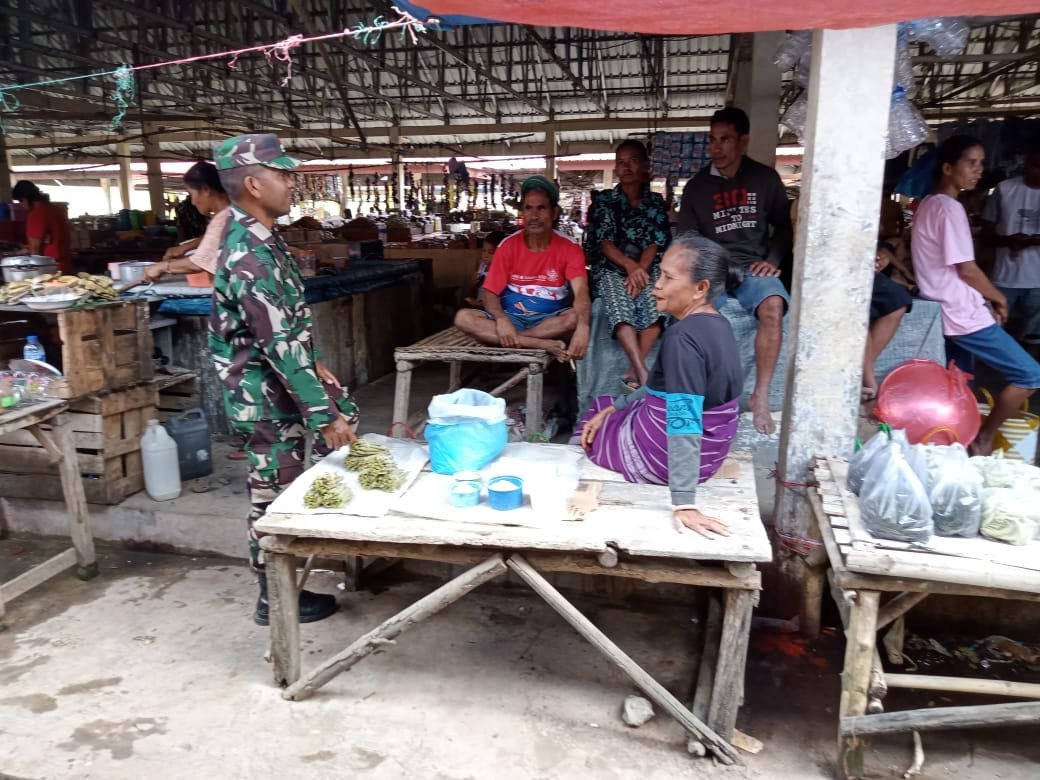 Babinsa Serda Idhar Gelar Komsos di Pasar Wilayah Koramil 03/Katikutana